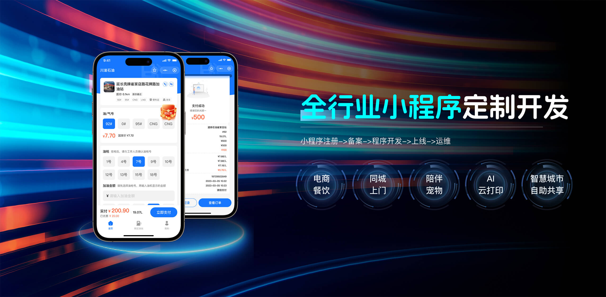 加油站小程序在線選擇油槍油管,支付寶快捷支付,查找附近油站位置查看案例川渝石油小程序 -